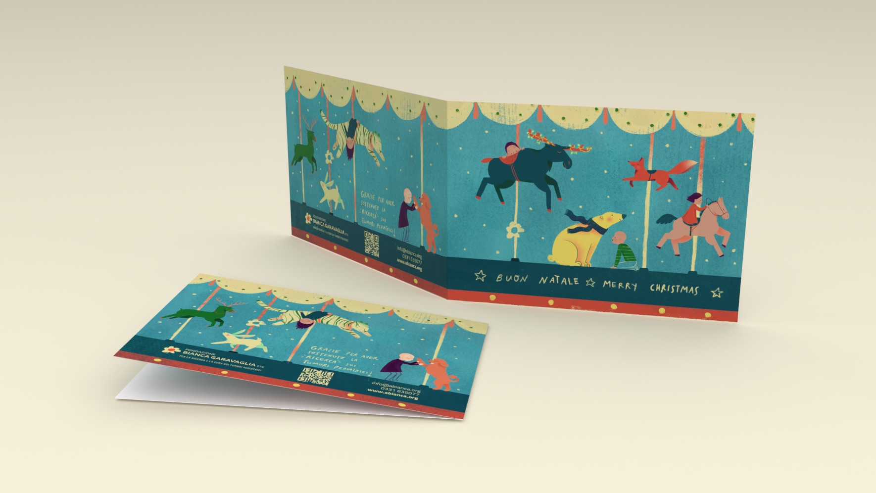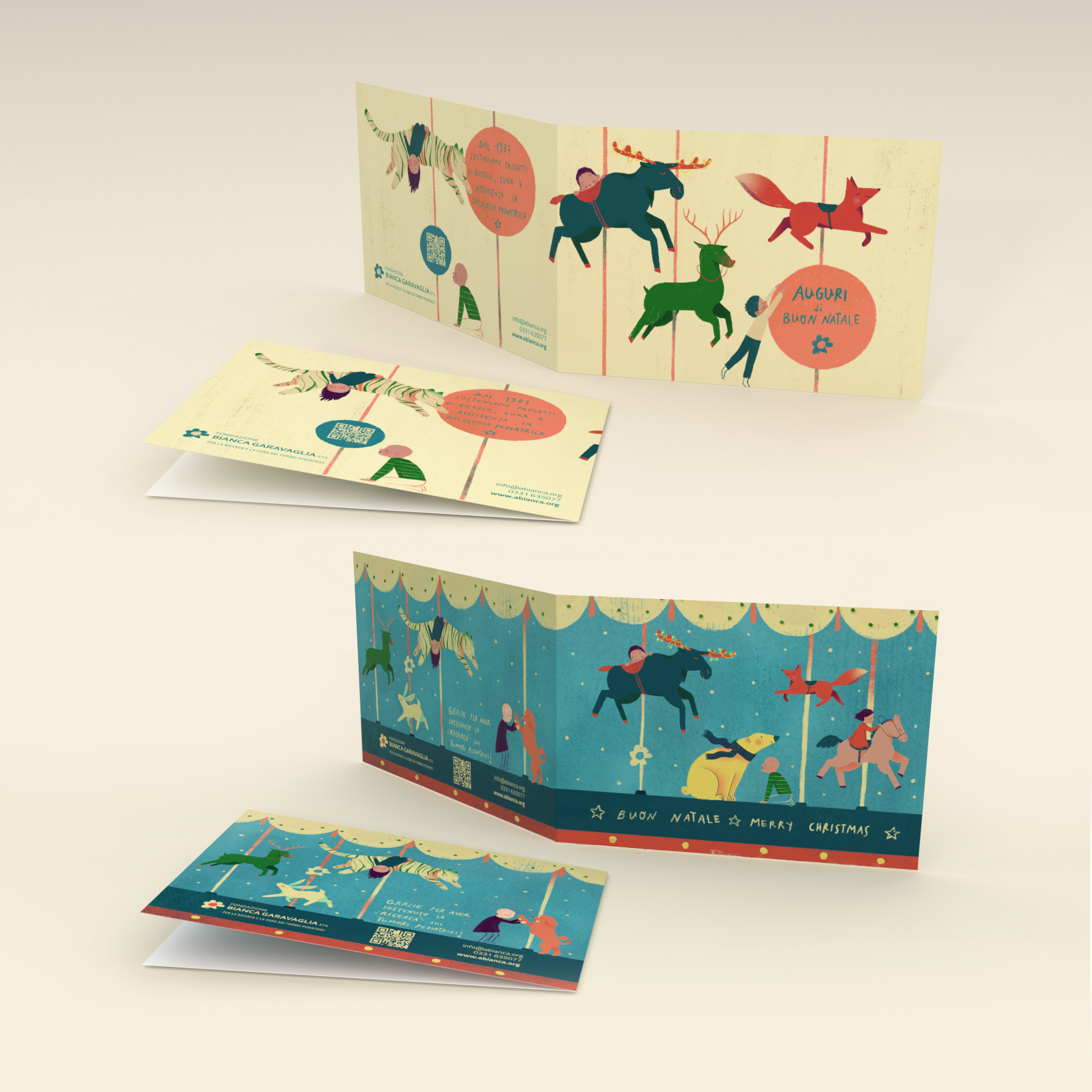 Biglietti augurali formato 15×11 cm con busta bianca.