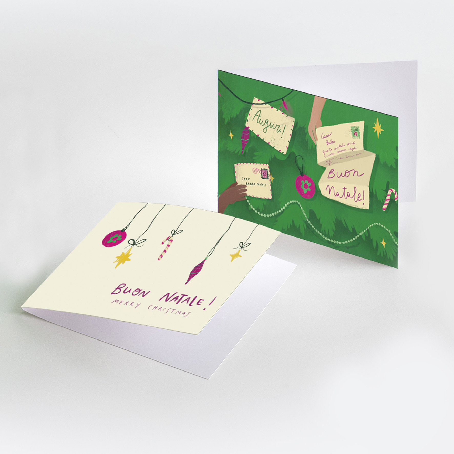 Biglietti di auguri formato 15×11 cm con busta bianca.