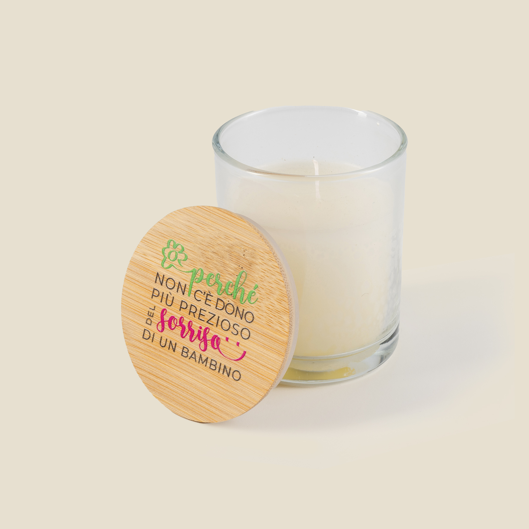 Candela profumata in bicchiere di vetro con coperchio in bamboo e scatola