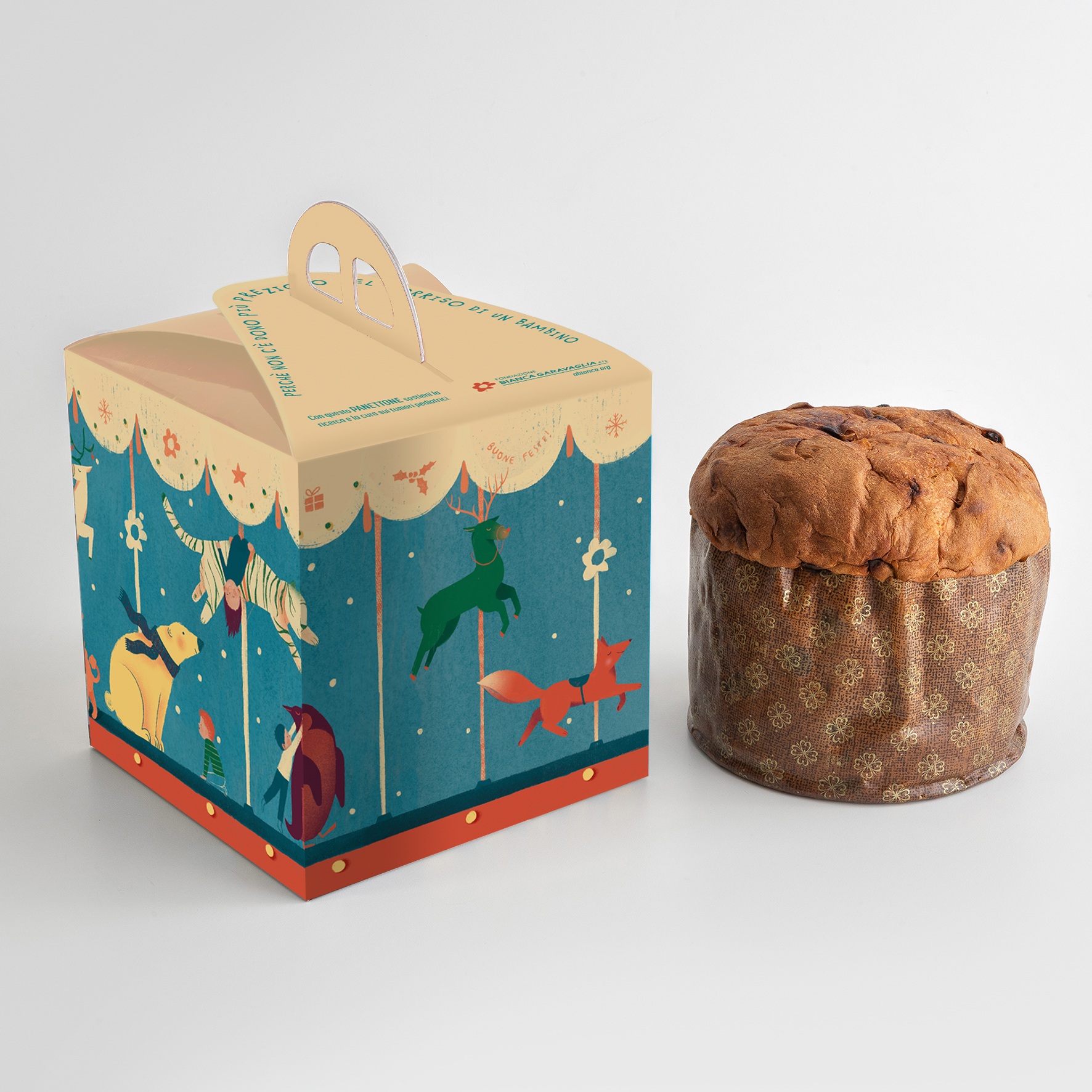 La confezione  realizzata dall’illustratrice Serena Viganò, é ispirata alla magia delle giostre e del Natale dei bambini.